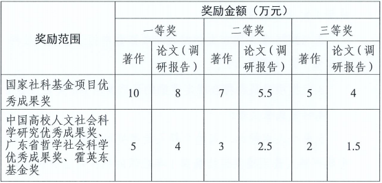 奖励标准:国家级项目按立项金额的1倍给予奖励,省级项目按立项金额的0.5倍给予奖励。