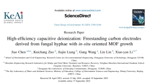 2025年11月,我校生态环境工程技术研发中心陈娇博士以第一作者身份在Green Energy & Environment发表题目为High-efficiency capacitive deionization: Freestanding carbon electrodes derived from fungal hyphae with in-situ oriented MOF growth 研究论文。东莞理工学院为第一单位,清华大学深圳国际研究生院李晓岩教授为该论文的通讯作者。该研究已获得中国国家重点研发、国家自然科学基金、广东省政府基础应用基础研究基金会等多个项目的资助。